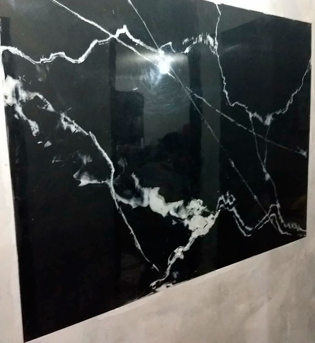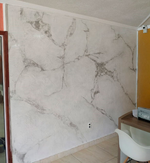 - O efeito mármore obtém-se na ultima aplicação, após seco deve-se espátula com a desempenadeira de aço inox toda a textura até obter um leve brilho, após aplique cera em pasta incolor em toda a superfície usando a desempenadeira de aço ou uma esponja macia.